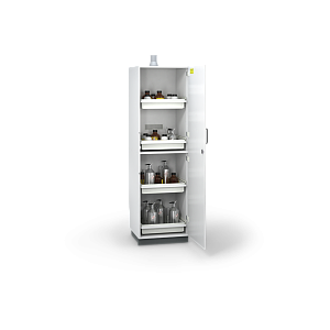 • Erősen vegyszerálló biztonsági tárolószekrények agresszív anyagok biztonságos tárolására.